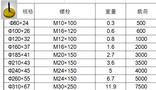 黃色長城型機床減震墊鐵尺寸承載參數: